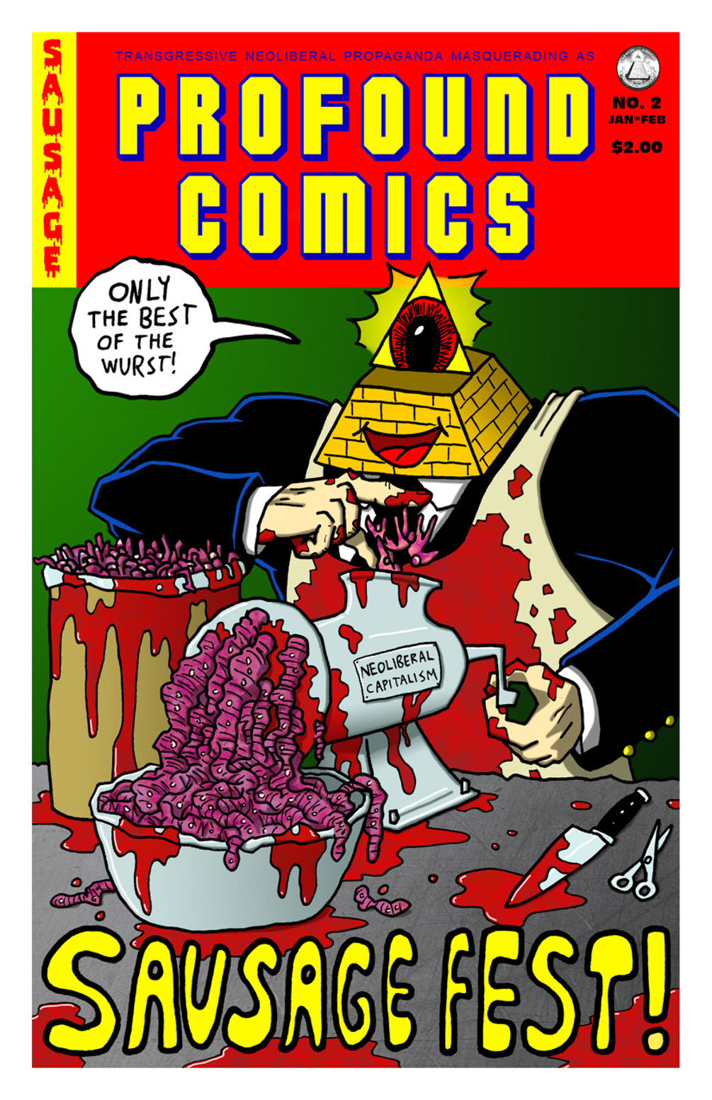 Transgressive Neoliberal Propaganda depicting cartoon breakfast mascots imbued with ritualistic power conquering the world. 40 pages, color but mostly black and white. Pay what you want for a PDF.