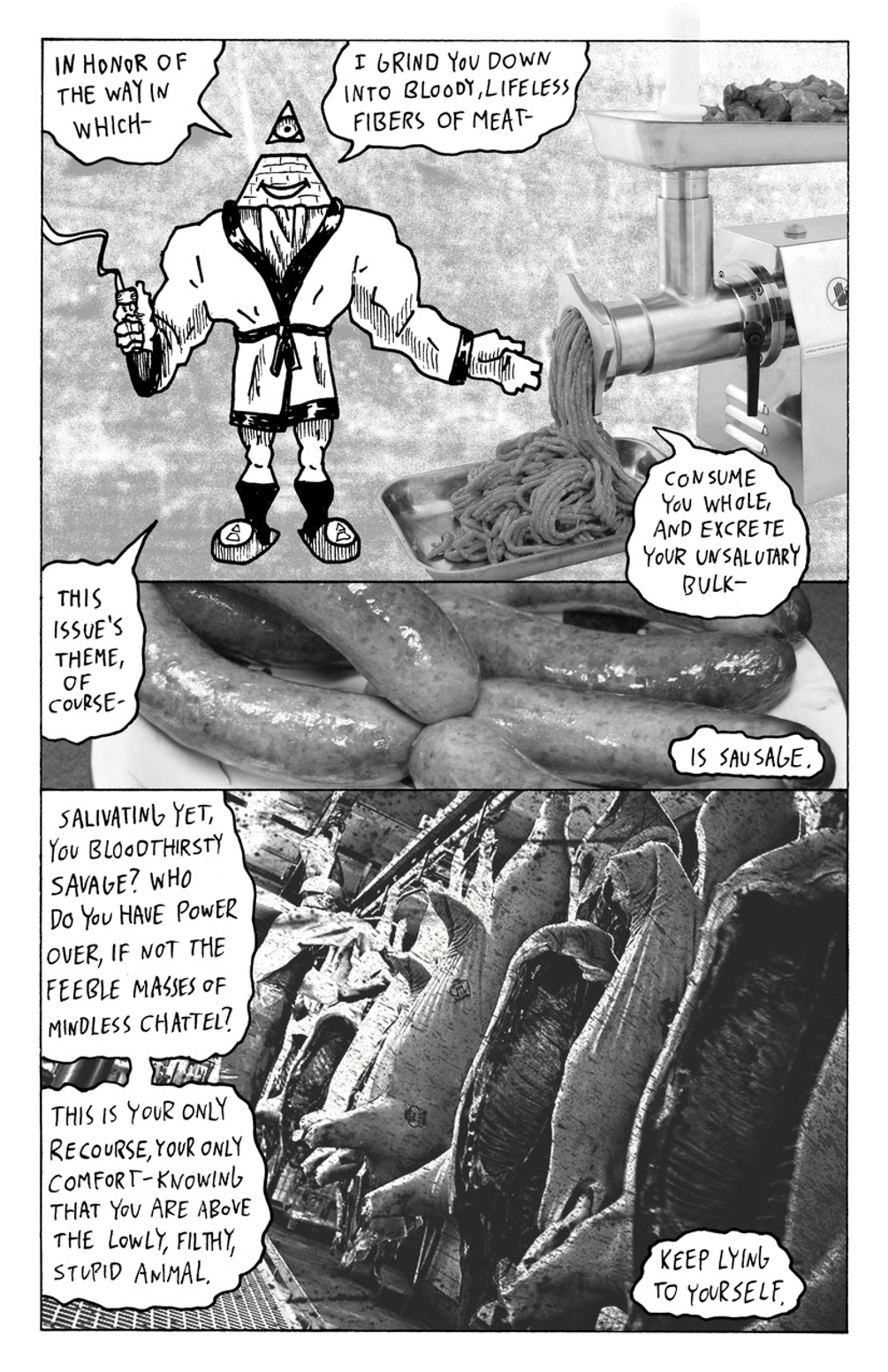 Transgressive Neoliberal Propaganda depicting cartoon breakfast mascots imbued with ritualistic power conquering the world. 40 pages, color but mostly black and white. Pay what you want for a PDF.